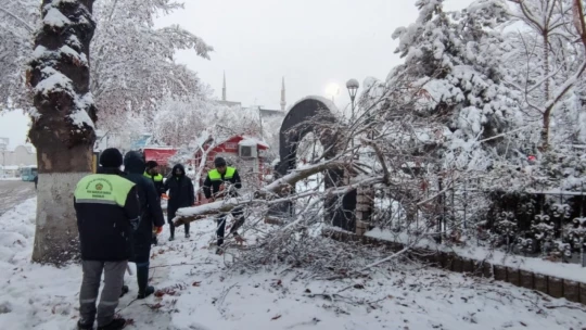 Öte yandan, Malatya Büyükşehir Belediyesi Park ve Bahçeler Müdürlüğüne bağlı ekipler tarafından da kar yağışı nedeniyle kırılarak yola düşen ağaç dalları da kaldırılıyor.