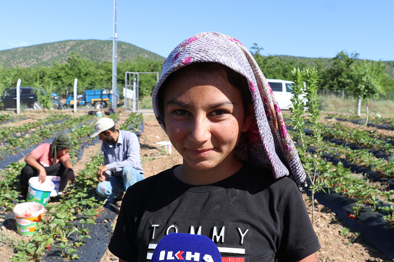 İrem Kaçmazlar adlı kız çocuğu ise "Öğrenciyim, 6'ıncı sınıfa gidiyorum. Boş zamanlarımda gelip çilek topluyorum. Bu şekilde hem okul harçlığımı çıkarıyorum hem de aileme destek oluyorum." dedi.