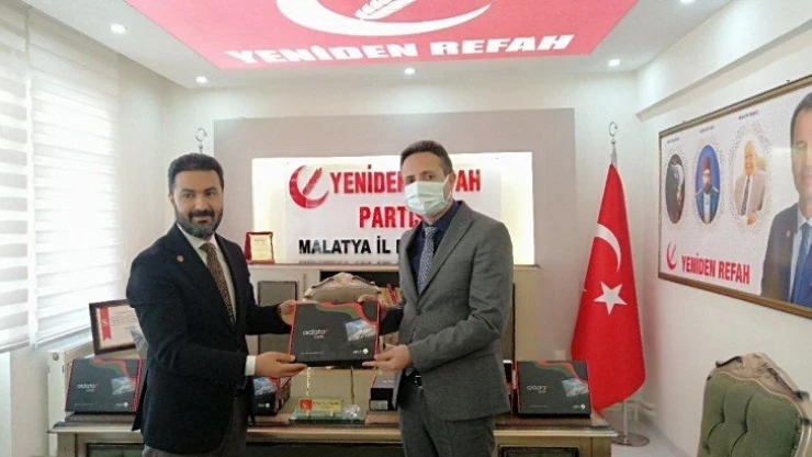 Yeniden Refah Partisi Malatya İl Başkanlığı tarafından pandemi sürecinde online eğitim ile eğitim öğretime devam eden yardıma muhtaç öğrenciler için 55 adet tablet, Malatya İl Milli Eğitim Müdürü Battal Kanbay'a teslim edildi.