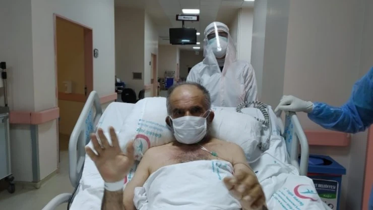 Malatya'da korona virüs salgınına yakalanan ve 20 gün solunum cihazına bağlı kalan 62 yaşındaki hasta, virüsü yenerek alkışlarla servise çıkarıldı.