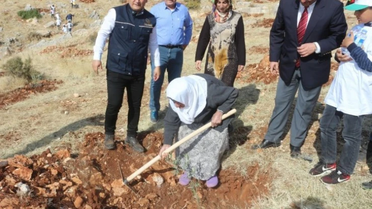 'Geleceğe Nefes Ol' kampanyası kapsamında Adıyamanlı 90 yaşındaki Leyla Şaraldı, fidanları toprakla buluşturdu.