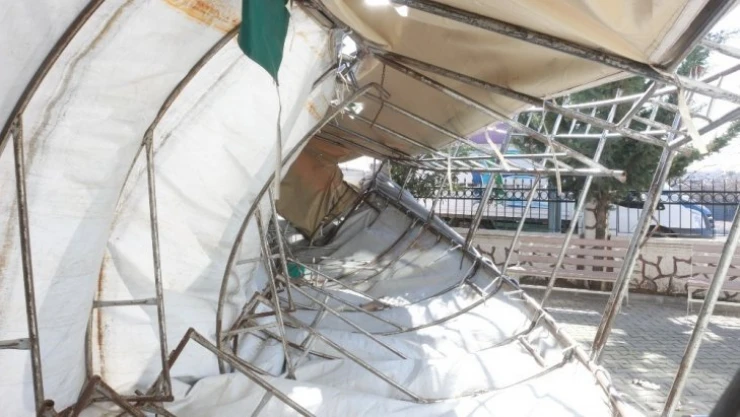 Adıyaman'da fırtına çadırları devirdi, tabelaları uçurdu