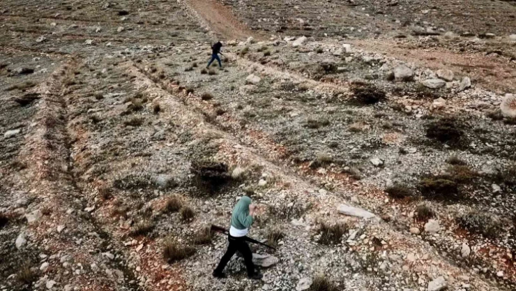 Adıyaman'da Doğa Koruma ve Milli Parklar Şube Müdürlüğü ekiplerinin uçurduğu dron kamerasına yakalanan kaçak avcılar, yüzlerini kapatarak kaçmaya çalıştı.
