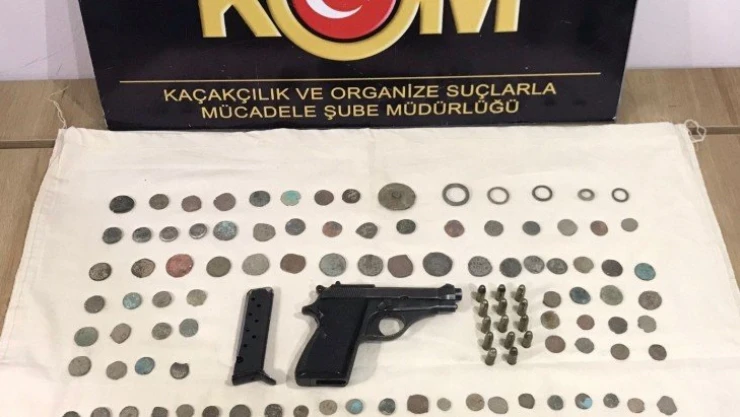 Edinilen bilgilere göre, Kaçakçılık ve Organize Suçlarla Mücadele Şube Müdürlüğü ekiplerince kent merkezinde bulunan iki adrese operasyon düzenledi. Yapılan operasyonda Roma Dönemi’ne ait 157 adet sikke, 6 adet metal obje, 1 adet tabanca ve bu tabancaya ait 14 adet mermi ele geçirildi. Tarihi sikke ve objeler muhafaza altına alınırken N.D. ve K.D. gözaltına alındı.