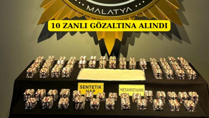 Malatya İl Emniyet Müdürlüğü Narkotik Suçlarla Mücadele Şube Müdürlüğü ekiplerince gerçekleştirilen operasyonda, 5 bin 595 adet sentetik ecza hap, 745 gram metamfetamin maddesi ve farklı miktarlarda diğer narkotik maddeler ele geçirildi.