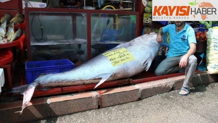 İzmir'de balıkçılar tarafından avlanan dev orkinos balığı, Elazığ'da bir balıkçı dükkanı önünde sergilendi. 2 metre 36 santimetre uzunluğunda ve 241 kilogram ağırlığındaki balığı görenler hayrete düştü. Dev orkinos yoldan geçenlerin ilgi odağı oldu. Dev balığı görmek için sıraya giren vatandaşlar, orkinosu şaşkınlıkla izleyerek fotoğrafını çekti. Orkinosun kilosunun 30 liradan satışa çıkarılacağı belirtildi.