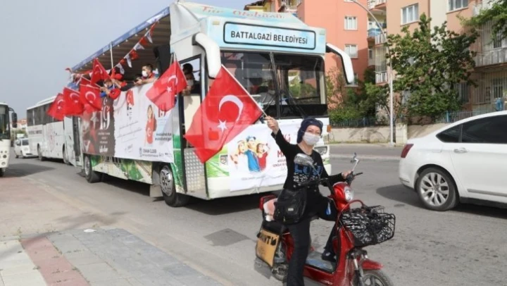 Battalgazi Belediyesi'ne ait üst açık tur otobüsü Türk bayraklarıyla donatılarak, şehir turu atıldı. Üstü açık tur otobüsünün cadde cadde, sokak sokak gezerek yaşatılan 19 Mayıs Atatürk'ü Anma Gençlik ve Spor Bayramı kutlamaları, vatandaşlardan tarafından büyük ilgi gördü. Vatandaşlar ellerinde Türk bayraklarıyla balkonlara çıkarak, bayram coşkusunu yaşadı. Sokaklarında Türk bayraklı otobüsü gören vatandaşlar, otobüs içinde çalınan şarkı ve türkülere de eşlik etti.