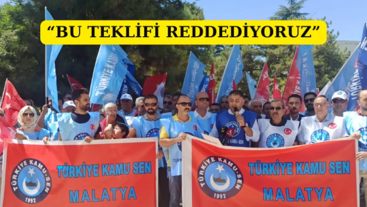 Türk Eğitim-Sen Malatya Şube Başkanı Fevzi Şahin, Malatya Park önünde yaptığı basın açıklamasında 8. Dönem Toplu Sözleşme Görüşmeleri kapsamında Kamu İşveren Heyeti'nin sunduğu zam teklifini kabul etmediklerini söyledi.