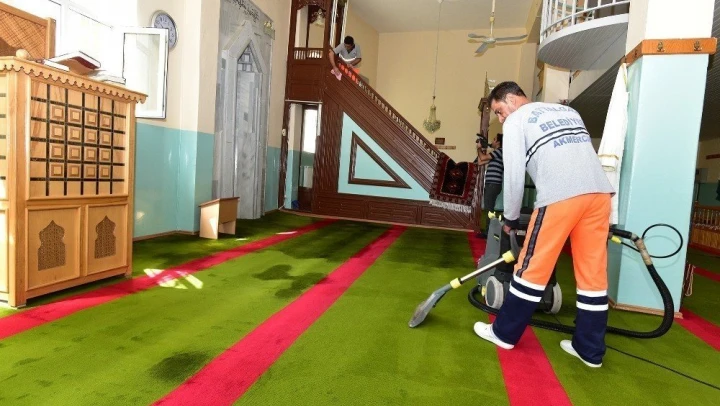 Yaklaşan Kurban Bayramı öncesi, Battagazi ilçesindeki camiler, belediye ekipleri tarafından temizleniyor.