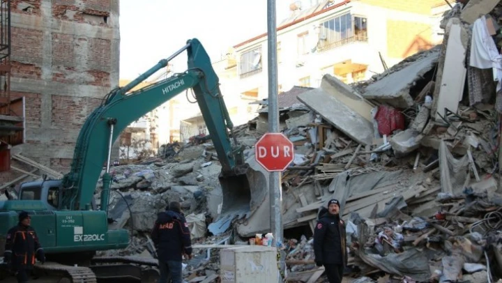 Elazığ'da 6,8 büyüklüğündeki depremde çöken binaların enkazı altında kalan vatandaşlar, arama kurtarma ekiplerinin yoğun çalışması sonucu kurtarılıyor. Mustafa Paşa Mahallesi'nde çöken alt katı dükkan 5 katlı Aykent Apartmanı'nda yürütülen arama kurtarma çalışmalarında şimdiye kadar 3 kişinin cansız bedenine ulaşılırken, 14 kişi ise sağ olarak kurtarıldı. Aynı yerde bulunan Kalay Apartmanı'nın enkazından ise 1 kişi sağ olarak kurtarılırken, 7 kişinin cansız bedenine ulaşıldı.