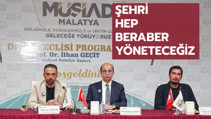 MÜSİAD programında iş adamları ve yatırımcılarla fikir alışverişinde bulunan Yeşilyurt Belediye Başkanı İlhan Geçit, şehri hep beraber yöneteceğini söyledi.