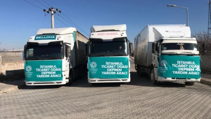 Türkiye genelinden deprem bölgelerine yardımlar devam ediyor. İTO'nun ihtiyaç malzemeleri taşıyan 20 tırı bölgeye ulaştı.