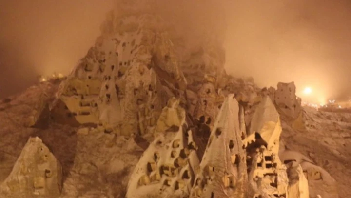 Türkiye'nin önemli turizm merkezlerinden Kapadokya'da akşam saatlerinde başlayan kar yağışı etkili oldu. Nevşehir'in merkez ilçeye bağlı Uçhisar ve Göreme beldelerinde etkili olan kar yağışı peribacalarını kısa sürede beyaza bürürken ortaya kartpostallık görüntüler çıktı.