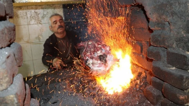 Malatya'da Demirciler Çarşısı'nda kelle paça ütüleme işi yapan esnaflar bu ara yoğun mesaide. Temizledikleri koyun kelle paçaları demir dövülen ocakta 'Ütüleme' diye adlandırılan işlemden geçiren esnaflar kelle paçaları 35 TL'ye satıyor.