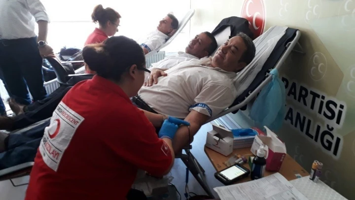 MHP Battalgazi ilçe teşkilatı tarafından gerçekleştirilen kan bağışı kampanyasına MHP Milletvekili Mehmet Celal Fendoğlu'da destek verdi.