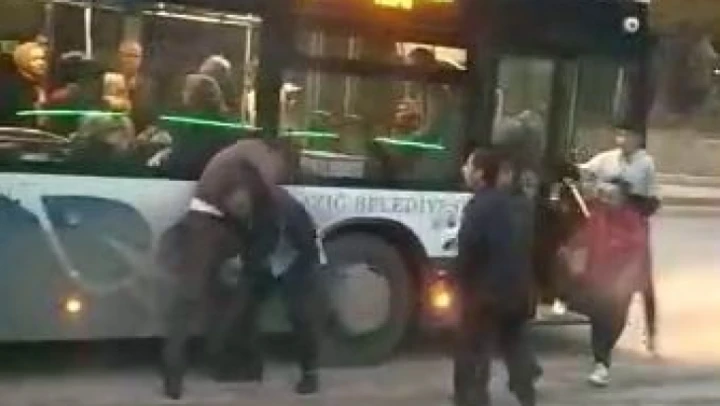 Otobüs 5 metre ileride indirdi diye kavga çıkarttı