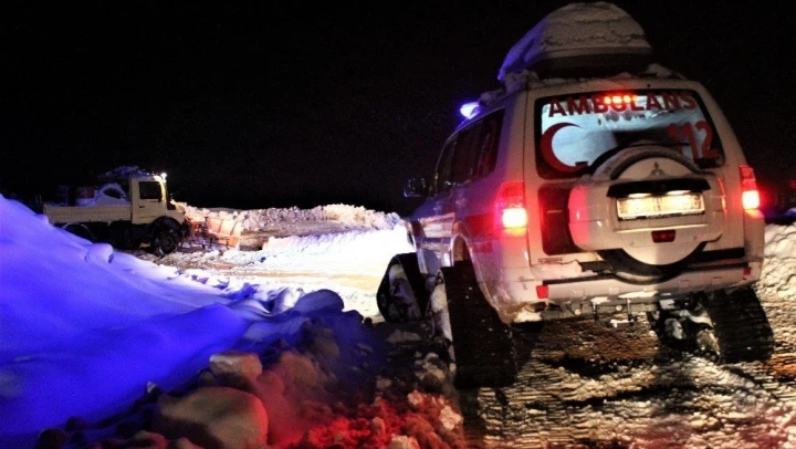 Elazığ'da gece etkili olan kar yağışı nedeniyle köy yolları kapanırken, rahatsızlanan 78 yaşındaki Nazmiye nineye paletli ambulansla sağlık ekipleri, özel idare ekiplerinin yaklaşık 3 saatlik çalışmasıyla ulaştı.