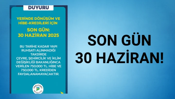 Yerinde Dönüşüm projesinin son başvuru günü 30 Haziran 2025...