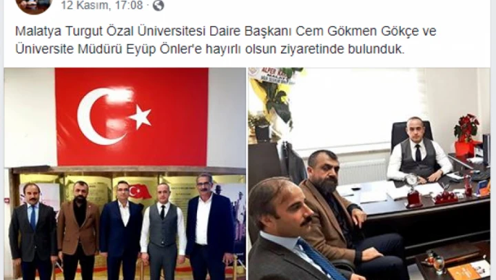 Battalgazi Belediyesi AKP'li Meclis Üyesi Şahin Karahan, sosyal medya hesabından Cem Gökmen Gökçe'nin görevlendirilmesiyle ilgili "Malatya Turgut Özal Üniversitesi Daire Başkanı Cem Gökmen Gökçe ve Üniversite Müdürü Eyüp Önler'e hayırlı olsun ziyaretinde bulunduk" mesajını paylaştı.