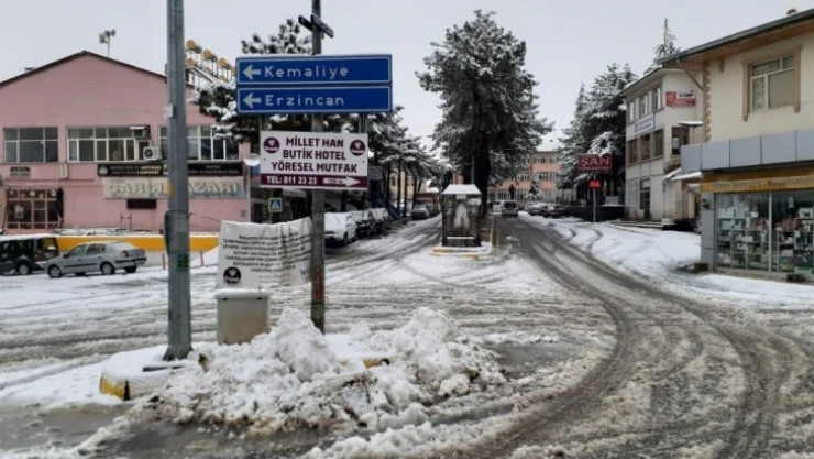 Arapgir'de korona endişesiyle boşalan sokaklar karla kaplandı