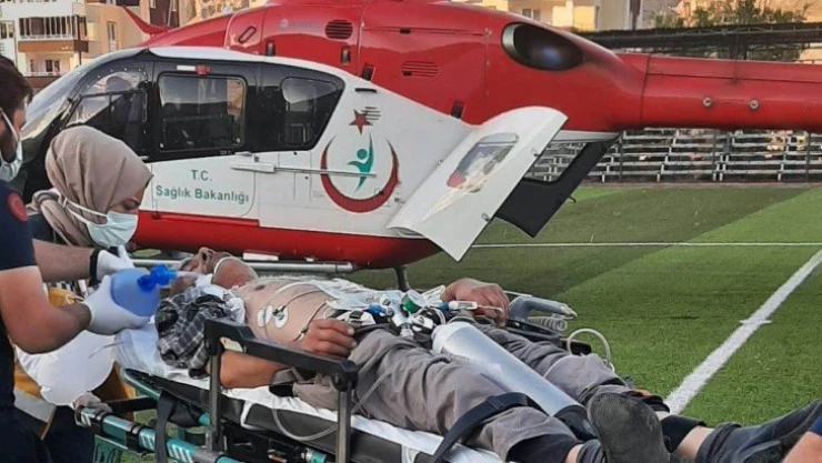 Arının soktuğu adam hava ambulansı ile hastaneye kaldırıldı