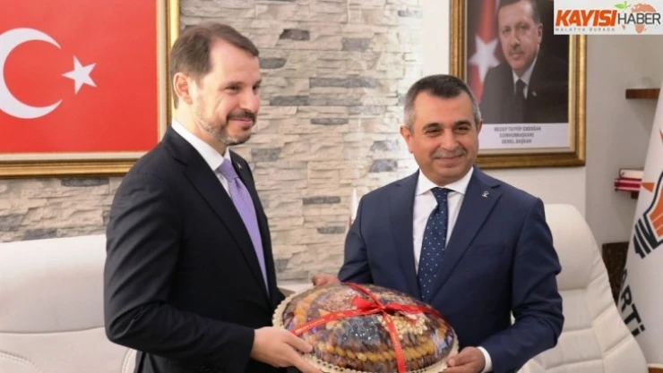 Malatya’da iş dünyası buluşmasına katılan Bakan Albayrak, daha sonra AK Parti Malatya İl Başkanlığını ziyaret etti. Girişte partililer tarafından karşılanan Albayrak, daha sonra İl Başkanı İhsan Koca’yı makamında ziyaret etti. Başkan Koca, ziyaretin anısına Bakan Albayrak’a Malatya kayısısı hediye edildi.