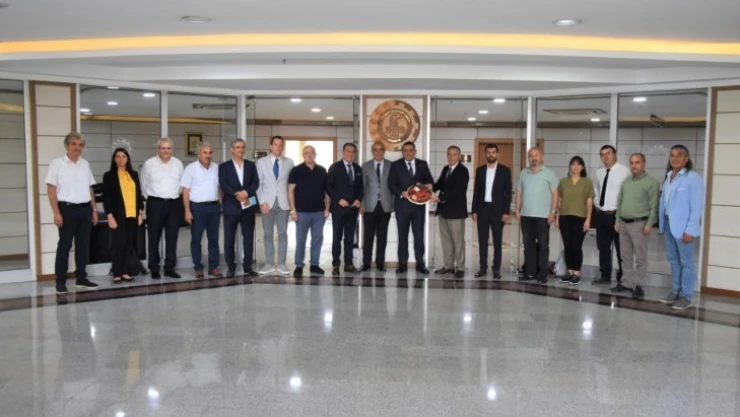 Malatya Kayısısı ve ihracatı üzerine çalışmalar yapmak üzere Malatya’ya gelen Ege İhracatçılar Birlikleri Sektör Kurulu Başkanı Osman Öz, Ege Kuru Meyve ve Mamulleri İhracatçıları Birliği Yönetim Kurulu Başkanı Mehmet Ali Işık, Türkiye İhracatçılar Meclisi (TİM) Sektör Konseyi Başkanı Birol Celep, Güneydoğu Anadolu İhracatçılar Birliği Başkan Yardımcısı Yalçın Geyik, İstanbul İhracatçılar Birliği Sektör Kurulu Üyesi Bahri Gültekin, Ege Kuru Meyve ve Mamulleri İhracatçıları Birliği Başkan Yardımcısı Yusuf Gabay, Ege Kuru Meyve ve Mamulleri İhracatçıları Birliği Yönetim Kurulu Üyesi Naci Çetin ve beraberindeki heyet Malatya Ticaret ve Sanayi Odası (MTSO) Başkanı Oğuzhan Ata Sadıkoğlu’nu ziyaret etti.