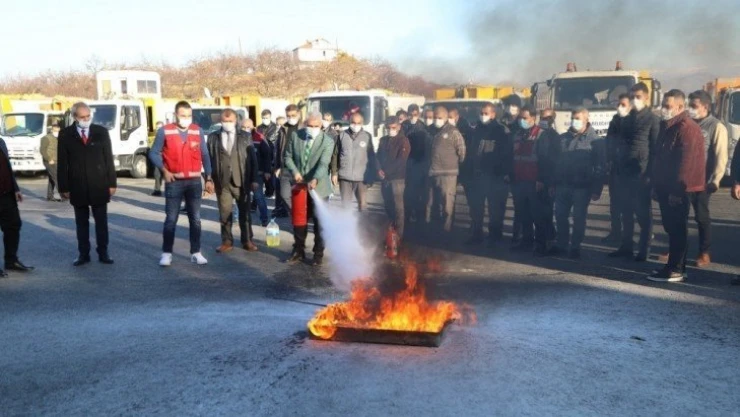 Malatya Battalgazi Belediyesi Temizlik İşleri Müdürlüğü tarafından temizlik personeline yangın söndürme, kurtarma, tahliye ve ilk yardım konularını içeren ’Yangın eğitimi ve yangın söndürme tatbikatı’ yapıldı.