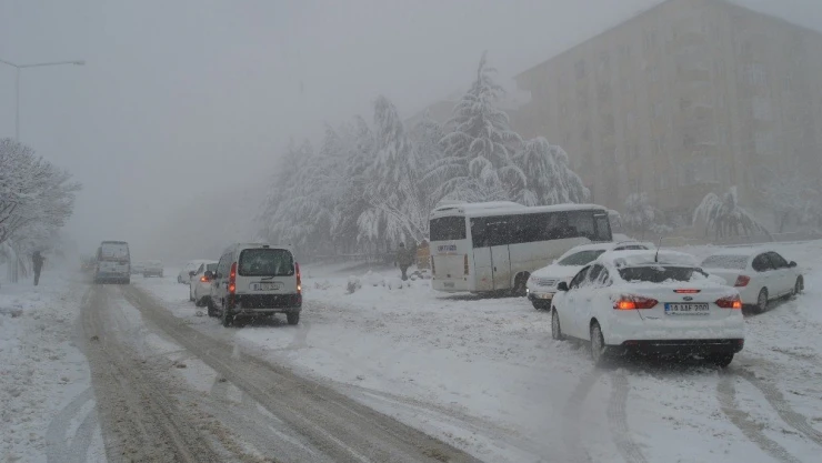 İlçe emniyet müdürlüğüne bağlı polis ekipleri Kozluca mevkinde kar lastiği ve zinciri olmayan araçları durdurarak geri dönmeleri konusunda uyardı.