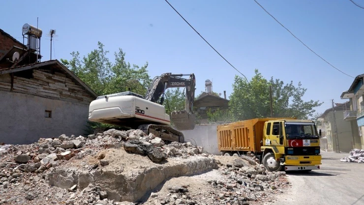 Malatya Büyükşehir Belediyesi, TOKİ tarafından Beydağı Mahallesinde gerçekleştirilen Kentsel Dönüşüm Projesi kapsamında yıkılan yapıların enkazlarını kaldırıyor.