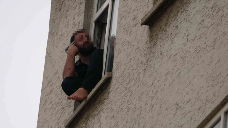 Elazığ'da gece cama çıkıp kafasına silah dayayan şahıs, 9 saat süren çalışmalar sonucu ikna edilerek camdan indirildi.