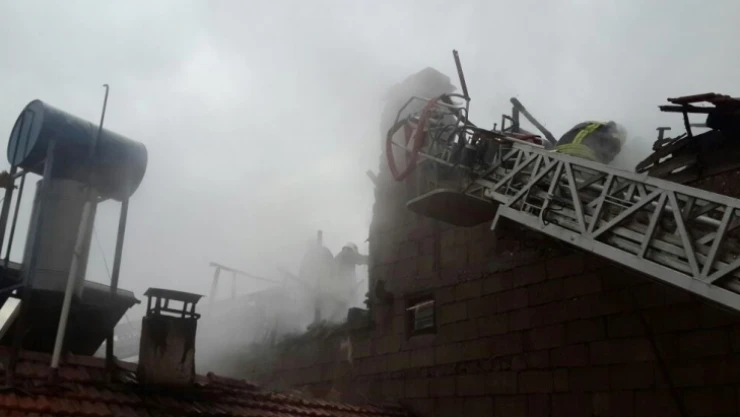 Malatya'da 2 katlı bir evin çatısında çıkan yangın korkuttu.