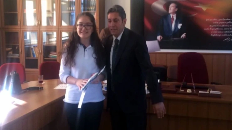 İl Milli Eğitim Müdürü Ali Tatlı Malatya birincisi olan Elif Sude Sığınır‘a başarısından dolayı tebrik ederek ödülünü takdim etti.
