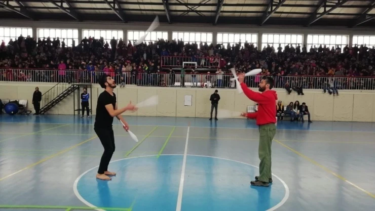 Çocuklar sirk gösterisiyle eğlendi