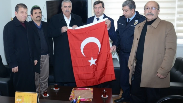 Siyasi parti başkanları Darende İlçe Emniyet müdürlüğünü ziyaret ederek Türk Bayrağı hediye ettiler.