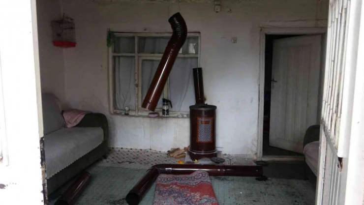 Devrilen soba boruları paniğe neden oldu