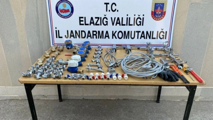 Jandarma ekiplerince malzeme tespitinde araçta olan 30 adet tuvalet musluğu, 11 adet çeşme bataryası, 7 adet su saati, 7 adet pislik tutucu ve 10 metre uzunluğunda elektrik kablosunun olduğu tespit edilerek şüpheliler gözaltına alındı. S.D. ve A.K. isimli iki şüpheli jandarmadaki işlemlerinin ardından sevk edildikleri adli mercilerce tutuklanarak Elazığ T Tipi Kapalı Ceza İnfaz Kurumuna gönderildi.