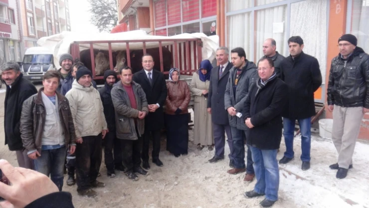 Konuşmaların ardından proje kapsamında 48 adet 8 aylık dişi dana ile 120 adet küçükbaş hayvan çiftçilere teslim edildi.