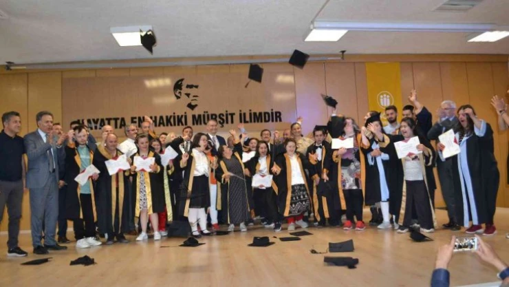 Malatya İnönü Üniversitesi ile Aile ve Sosyal Hizmetler İl Müdürlüğü tarafından düzenlenen program ile bir haftalık üniversite eğitimlerini tamamlayan down sendromlu bireyler, kep fırlatarak mezuniyet heyecanı yaşadı.