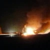 Elazığ’da seyir halindeki beton mikseri alev alev yandı.