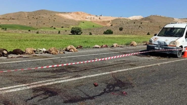 Elazığ'da hafif ticari araç sürüye çarptı, 16 koyun telef oldu