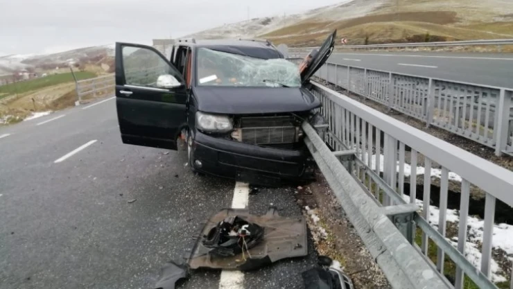 Elazığ'da sürücüsünün direksiyon hakimiyetini kaybettiği minibüs bariyere çarptı, 3 kişi yaralandı.