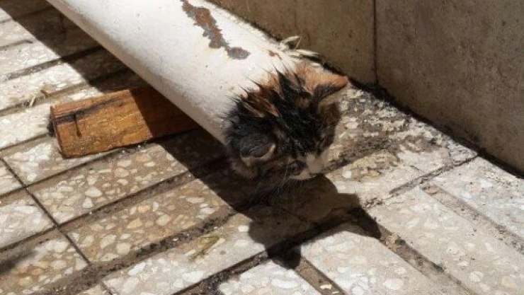 Malatya'da elektrik direğinin içerisine sıkışan yavru kediyi itfaiye ekipleri kurtardı.
