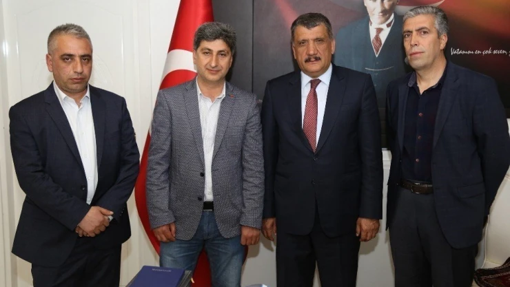 Evkur Yeni Malatyaspor Yönetim Kurulu Üyeleri Mehmet Maden ve Müslüm Boztaş, beraberinde iş adamı Remzi Uğur ile birlikte Battalgazi Belediye Başkanı Selahattin Gürkan’ı ziyaret etti. Maden ve Boztaş, takıma yapılan 200 bin TL’lik maddi yardımdan dolayı Başkan Gürkan’a teşekkür etti.