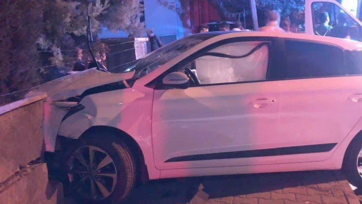 Adıyaman’da hafif ticari araç ile çarpışan otomobil kontrolden çıkarak bir sitenin bahçe duvarını çarparak durabildi.