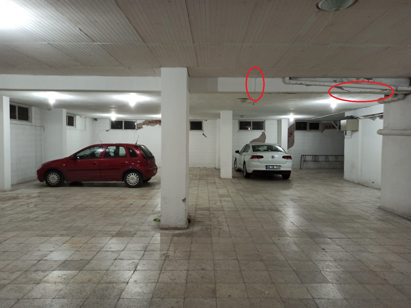 döşeme ve kiriş açıklıkları çok fazla yük sistemde çok dolanmış plak döşeme tipine benziyor içerde sarkık kirişler var plak döşemede bu kadar açıklık geçmek zaten sorun statik sistem açısından , ha hasara gelince açıklığı fazla olan kirişlerde kesme ve eğilme çatlakları kalıcı hasarlar var yatay taşıyıcı elemanlar kirişler taşıma kapasitesini yitirmiş yapının tasarımından aldığı hasara kadar falso var bu tarz binalarda neden meslektaşlarımız gözlerini kapatıyor ,yıllarca eğitim alıp tecrübe kazanıyorsunuz ÖNCE CAN SONRA MAL güvenliğini sağlamak için DÖKÜLEN EMEĞİN KARŞILIĞI HANİ NEREDE ???