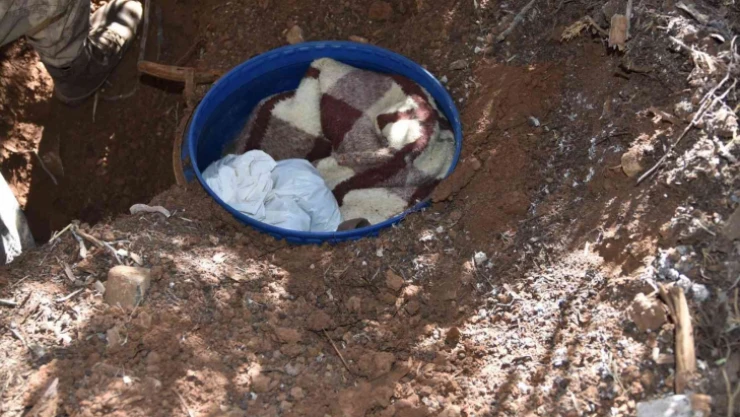 Operasyonda, örgüt mensupları tarafından kullanıldığı değerlendirilen noktada toprağa gömülü vaziyette patlayıcı yapımında kullanılan maddeler ile bir kısmı yaşam malzemeleri olan eşyalar ele geçirildi.