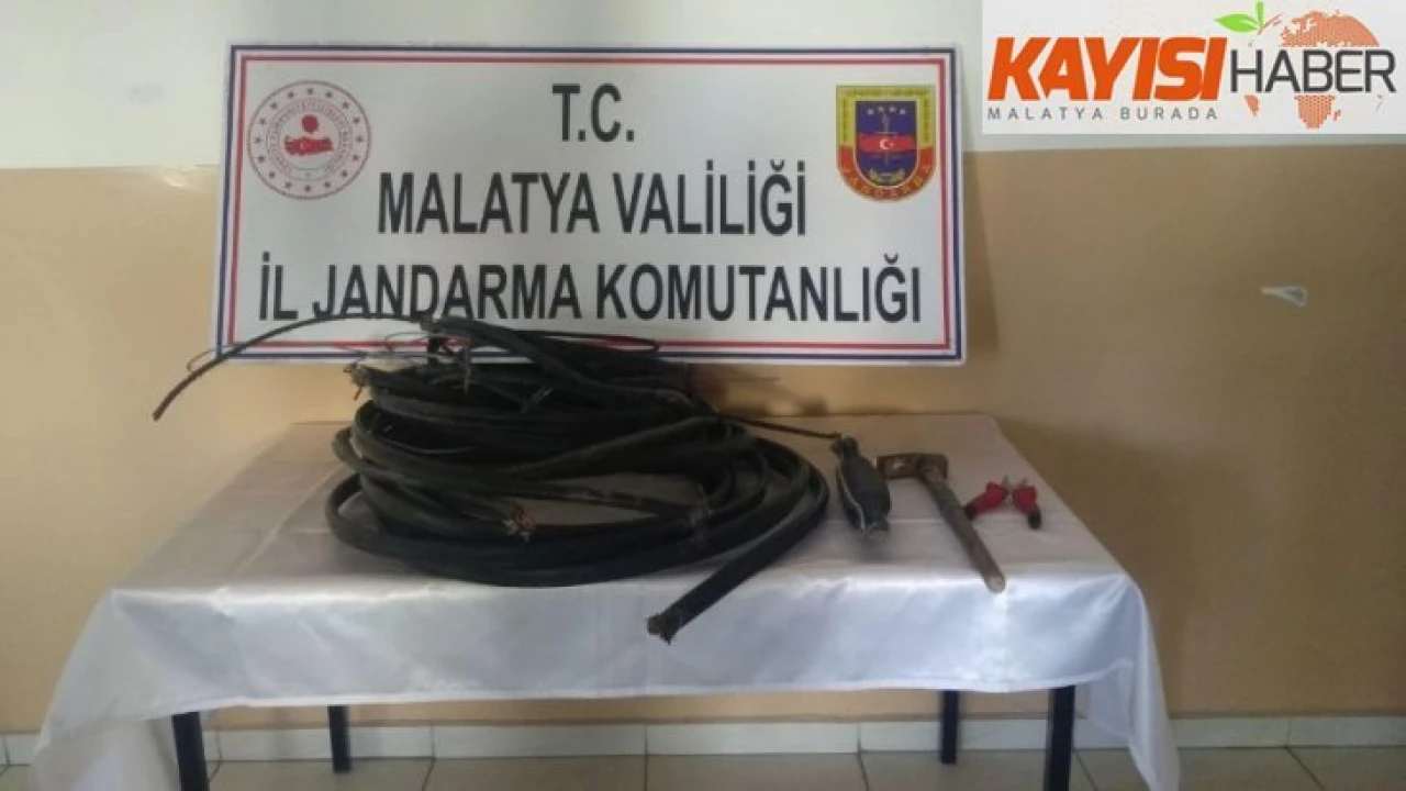Malatya'da Türk Telekom'a ait kabloları çalan iki şüpheli jandarma tarafından suçüstü yakalandı.