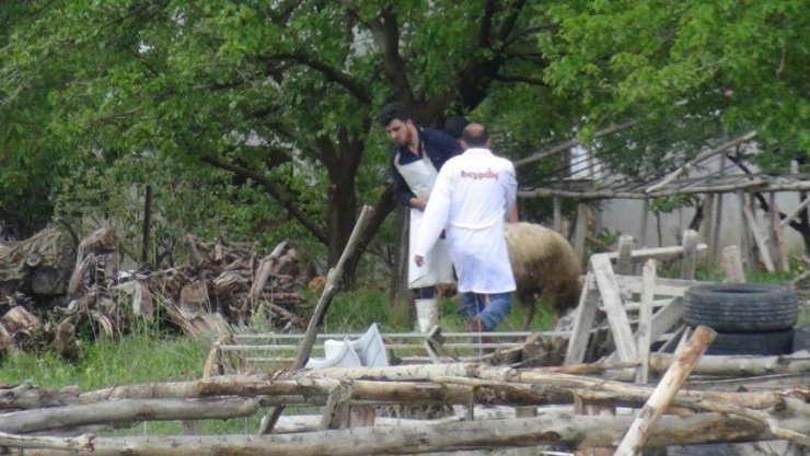 Yaklaşık yarım saatlik kovalamacanın ardından kıstırılan koyun yakalanarak güçlükle de olsa tören alanına getirildi. Gümrük ve Ticaret Bakanı Bülent Tüfenkci’nin katıldığı temel atma töreninde yapılan dua sonrası koyun kesilerek okulun temeli atıldı.