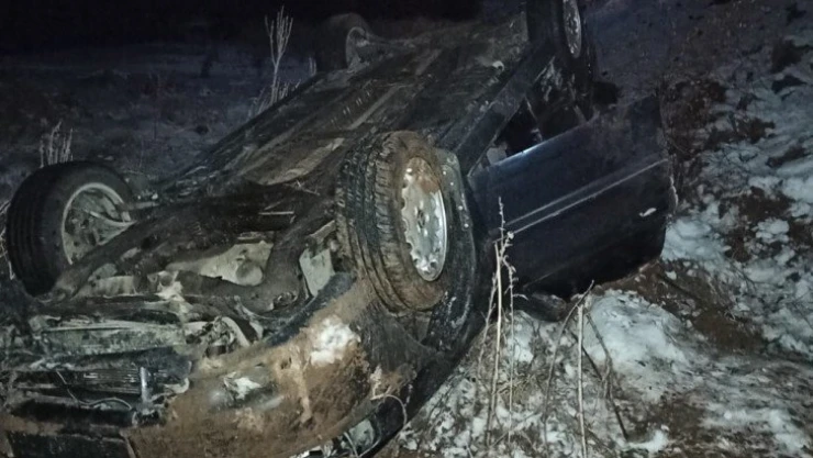 Adıyaman'ın Gölbaşı ilçesinde kar yağışı sonrası kayganlaşan yolda sürücüsünün direksiyon hakimiyetini kaybettiği otomobil şarampole devrildi.